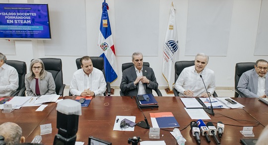 El ministro Fulcar estuvo acompañado por el obispo de la Diócesis de San Pedro, Santiago Rodríguez; el director de la regional de Educación 05, Isidro Santana; el presidente de la Federación Nacional de Asociaciones de Padres y Amigos de Escuelas, Jaime Tolentino, y el alcalde municipal, Juan Ignacio Vargas Padilla, junto a los directores de distritos de la Regional 05.