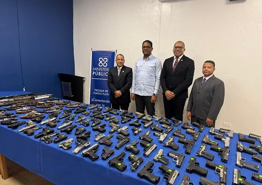 PUERTO PLATA. – La Fiscalía de Puerto Plata entregó al Ministerio de Interior y Policía (MIP) un total de 132 armas de fuego incautadas en diversos operativos.