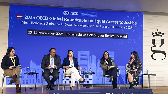 La Mesa Redonda Global de la OCDE 2025 sobre Igualdad de Acceso a la Justicia, se realizó del 12 al 14 de noviembre de 2025, como parte del Foro de Políticas de Justicia, realizado en Madrid, España, con la participación de más de 40 delegaciones internacionales.